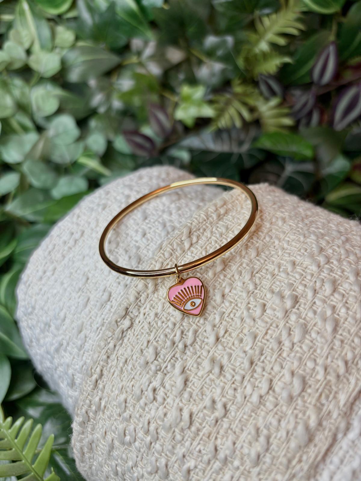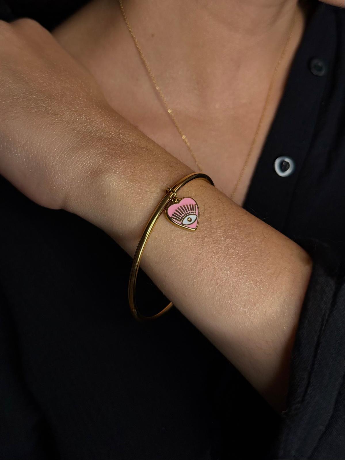 Bracelet Jonc avec charm cœur et œil protecteur.